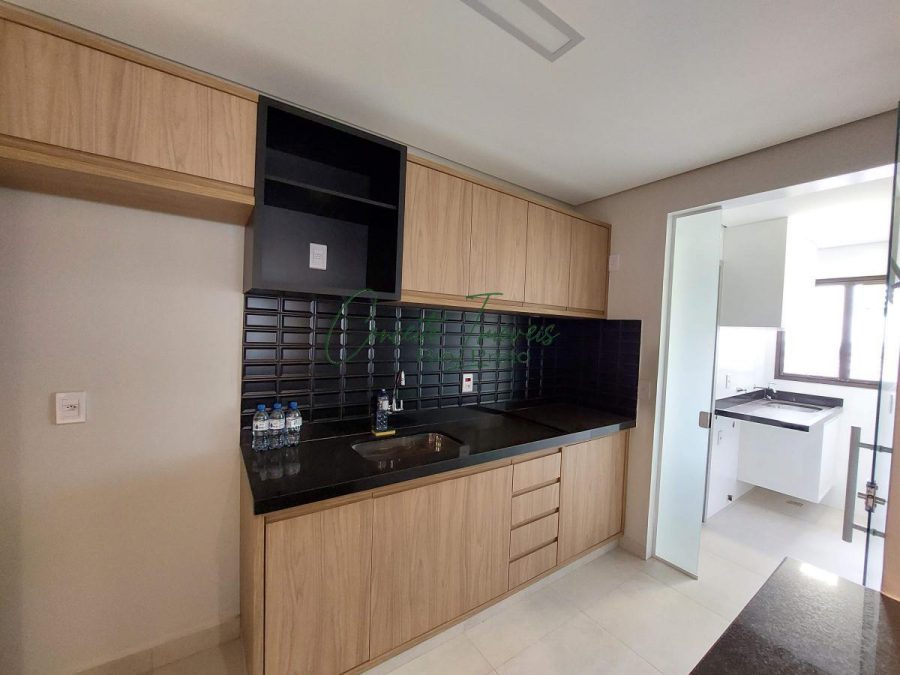 Ambientes com móveis planejados, armários na cozinha e dormitórios, ar-condicionado, box em vidro temperado e acabamentos em granito.